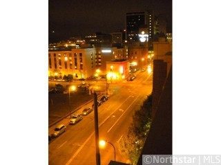 Bookmen Lofts designed by James Dayton, authentic loft conversion. Large common deck facing city skyline & nearby Target Center / Light Rail. Fitness center. unit w/original masonry art wall leading to granite/stainless kit & DR, LR w/fplc, raised BR.